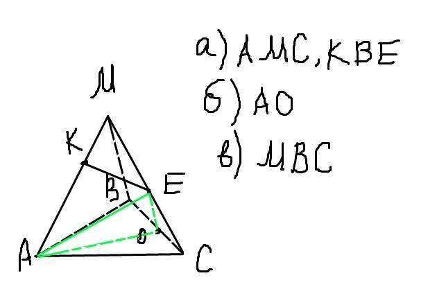 Построить треугольную пирамиду МABC. На ребре МА отметить точку К, на ребре МС - точку Е, на ребре ВС- точку О.