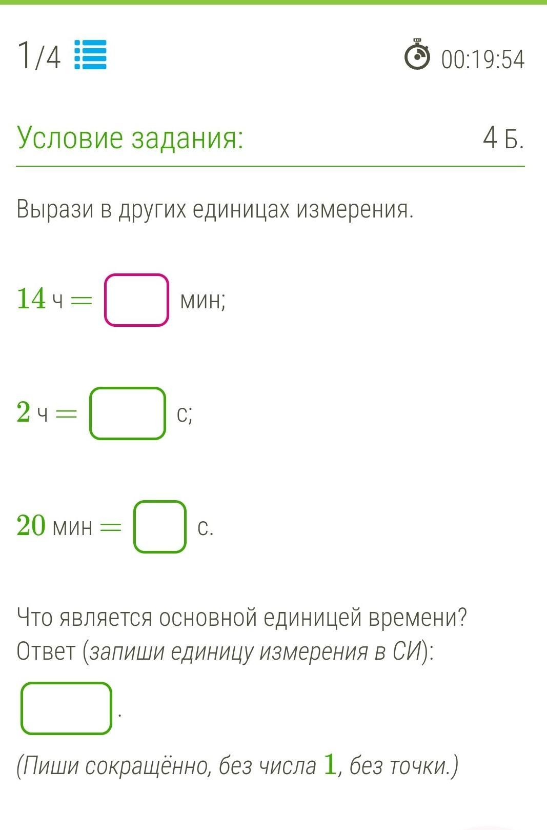 Вырази в других единицах измерения. о 144= 24= 20 мин = о мин; с; С. Что является основной единицей времени? Ответ (запиши единицу измерения в СИ): (Пиши сокращённо, без числа 1, без точки.) ДАЮ 50 БАЛЛОВ