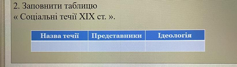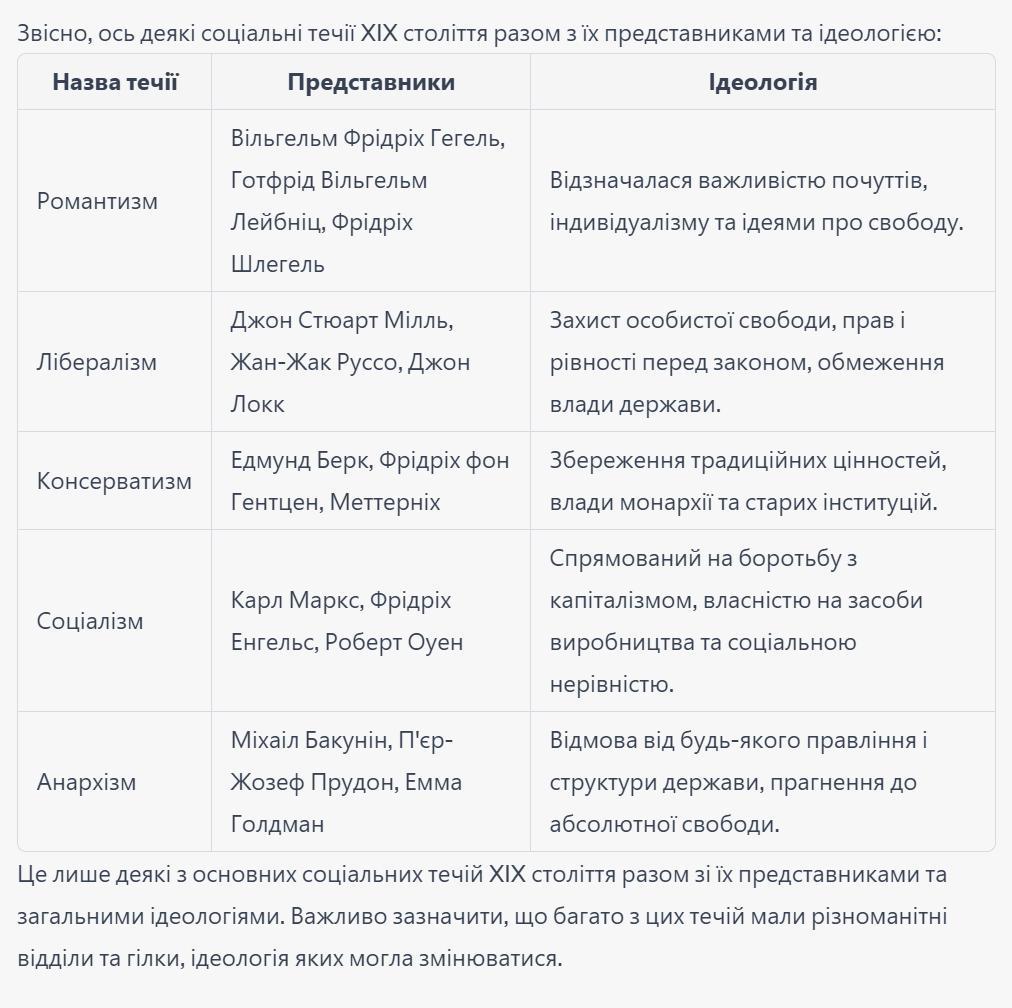 Звісно, ось деякі соціальні течії XIX століття разом з їх представниками та ідеологією: