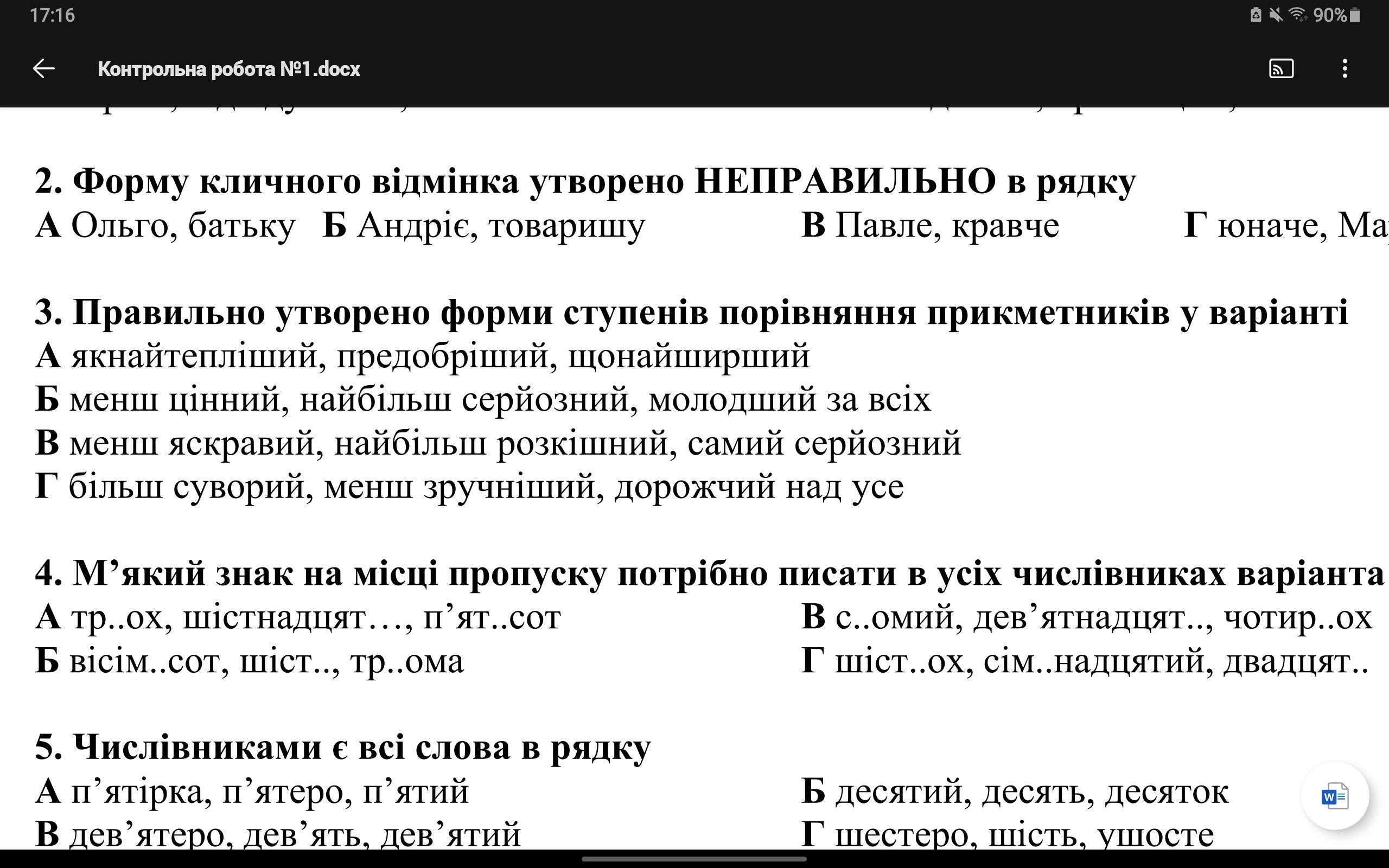 4. В (сьомий, дев'ятнадцять, чотирьох)