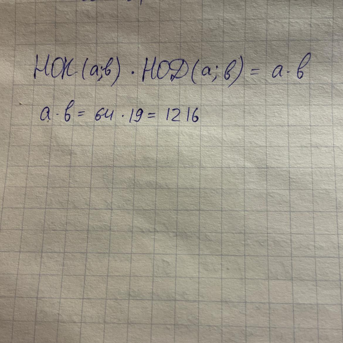 Если НОК (a;b)=64 и НОД (a;b)=19,найдите a•b