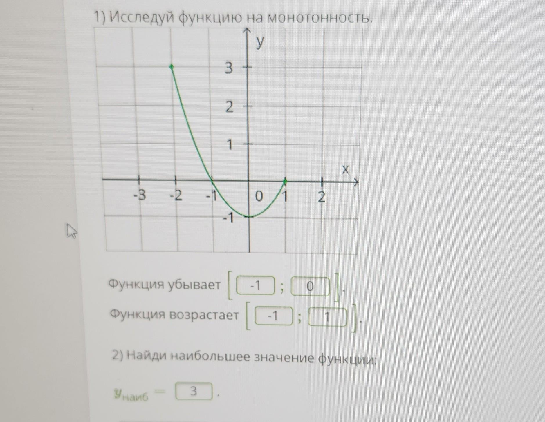 монотонность указывается по значению х, по этому функция убывает [-2;0] и возрастает [0;1]