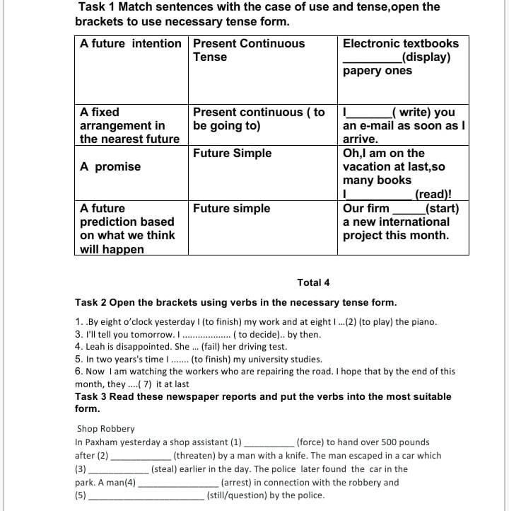 Task 3 Read these newspaper reports and put the verbs into the most suitable form.