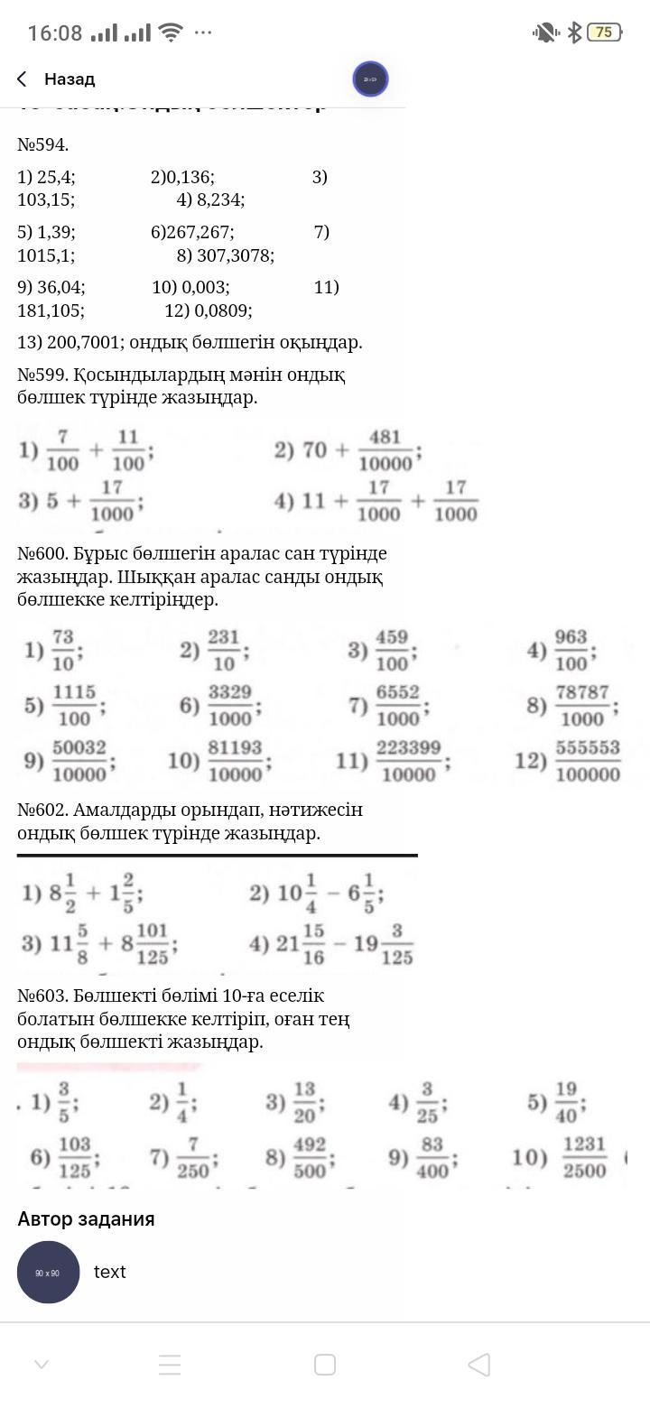 603. Сократите дробь до дроби, знаменатель которой кратен 10, и запишите эквивалентную десятичную дробь.