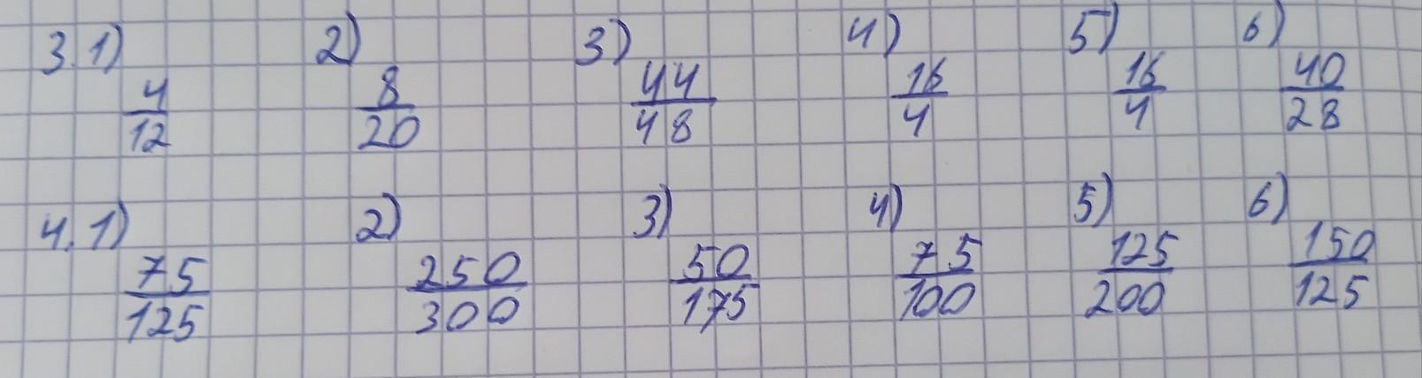 Поділіть чисельник і знаменник кожного дробу на 5 та запишіть відповідні рівності