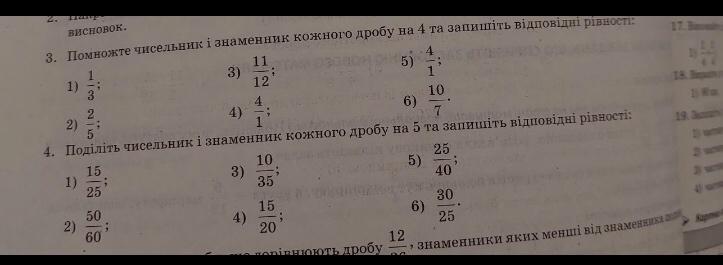 Помножте чисельник і знаменник кожного дробу на 4 та запишіть відповідні рівност.
