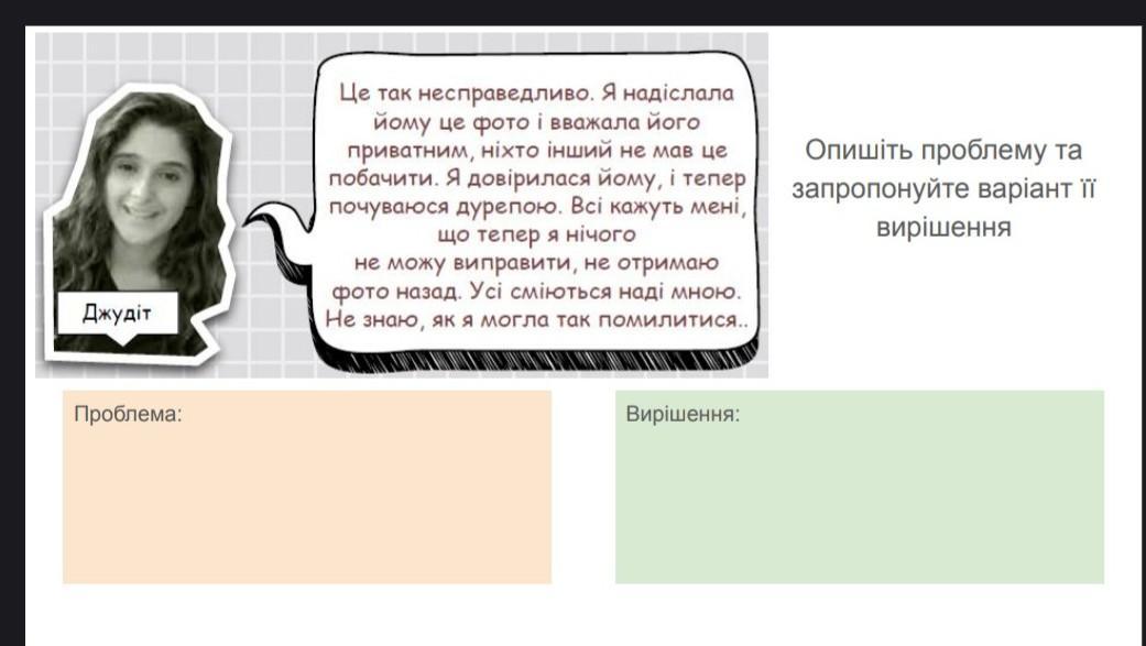 Відповідь: проблема в тому що вона довірилася про дій людині яка не держала своє слово вирішення в тому щоб не общатися з цією людиною