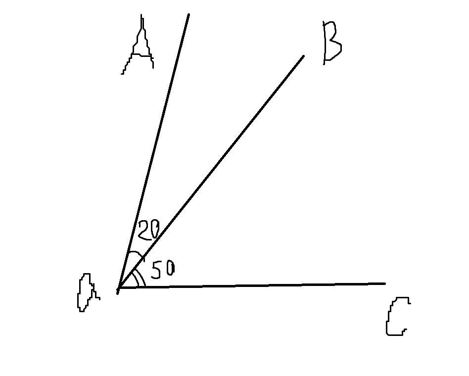 кут АОС=кут АОВ+кут BOC=20+50=70 градусів