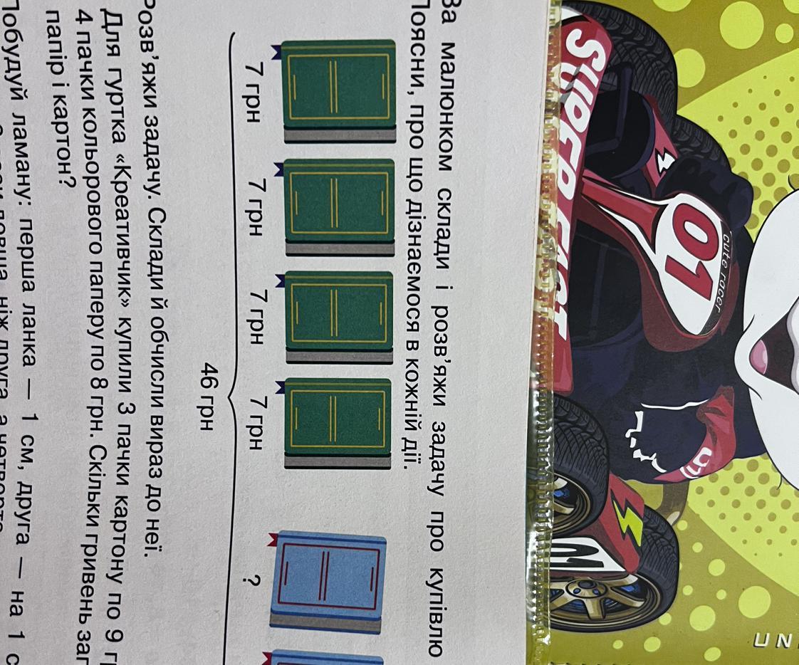 6 За малюнком склади і розв'яжи задачу про купівлю блокнотів.