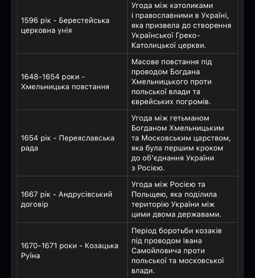 Ось таблиця основних подій в Україні з 16-ого до початку 17-ого століть: