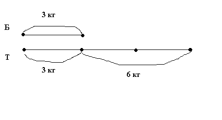 Тузик тяжелее Барсика на 6 кг и в 3 раза, значит 6 кг это две части из трех. Значит Барсик весит 3 кг. Схему прилагаю. В ней все видно.