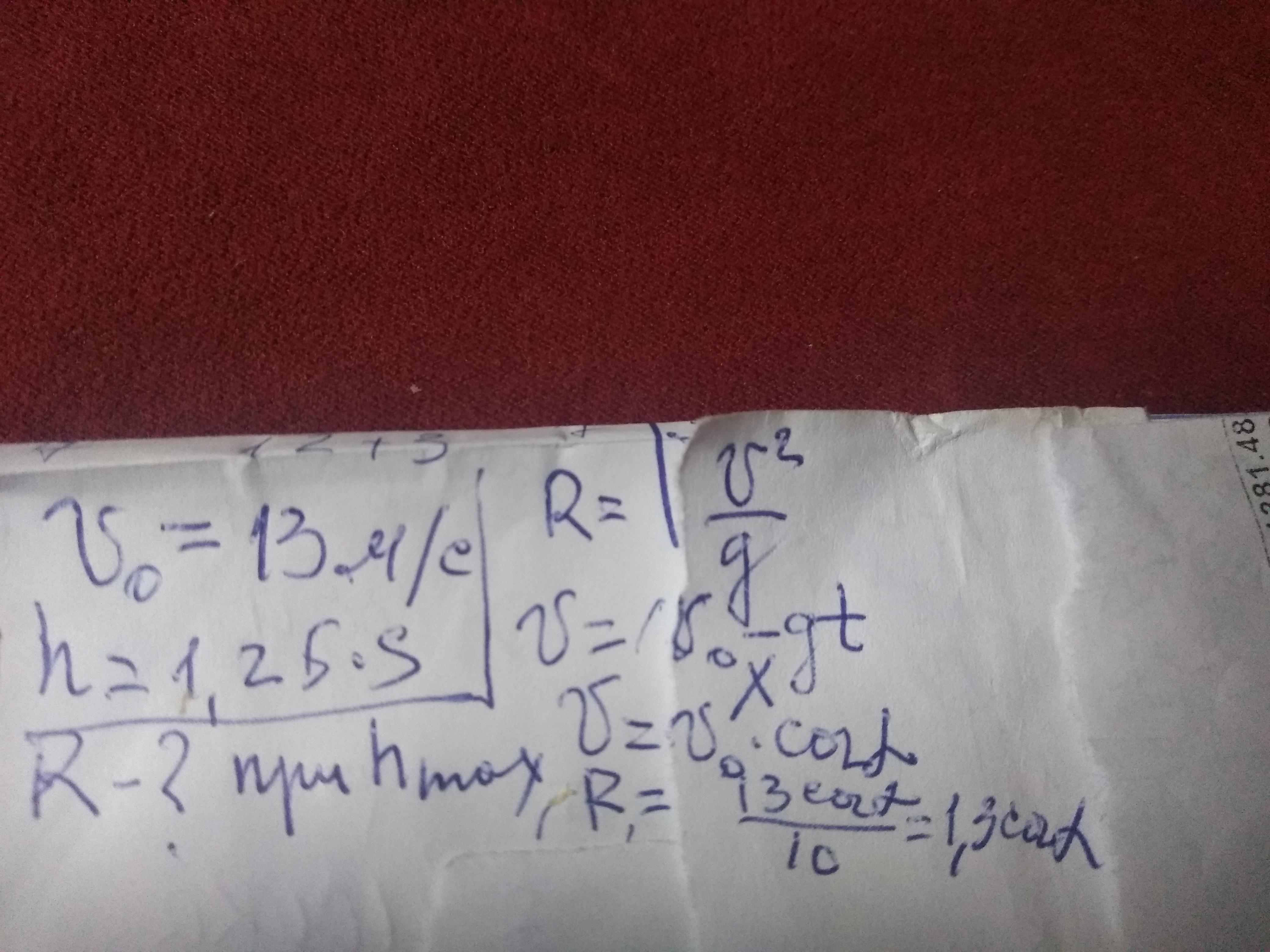 Небольшое тело бросают с поверхности земли под углом к горизонту с начальной скоростью V0 =13 м/с. Известно, что максимальная высота подъема тела в п=1,25 раза больше его горизонтальной дальности полета. Найдите радиус кривизны траектории тела в точке наивысшего подъема. Ускорение свободного падения - 10 м/с²