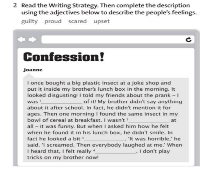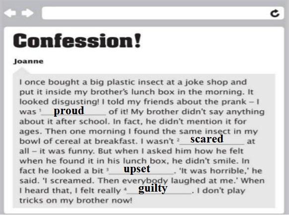 1. Proud 2. Scared 3. Upset 4. Guilty