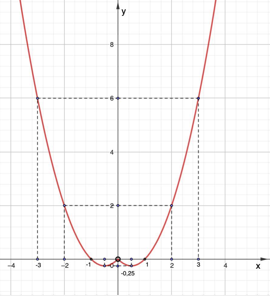 х₀ = -b/2a = 0,5; y₀ = -0,25