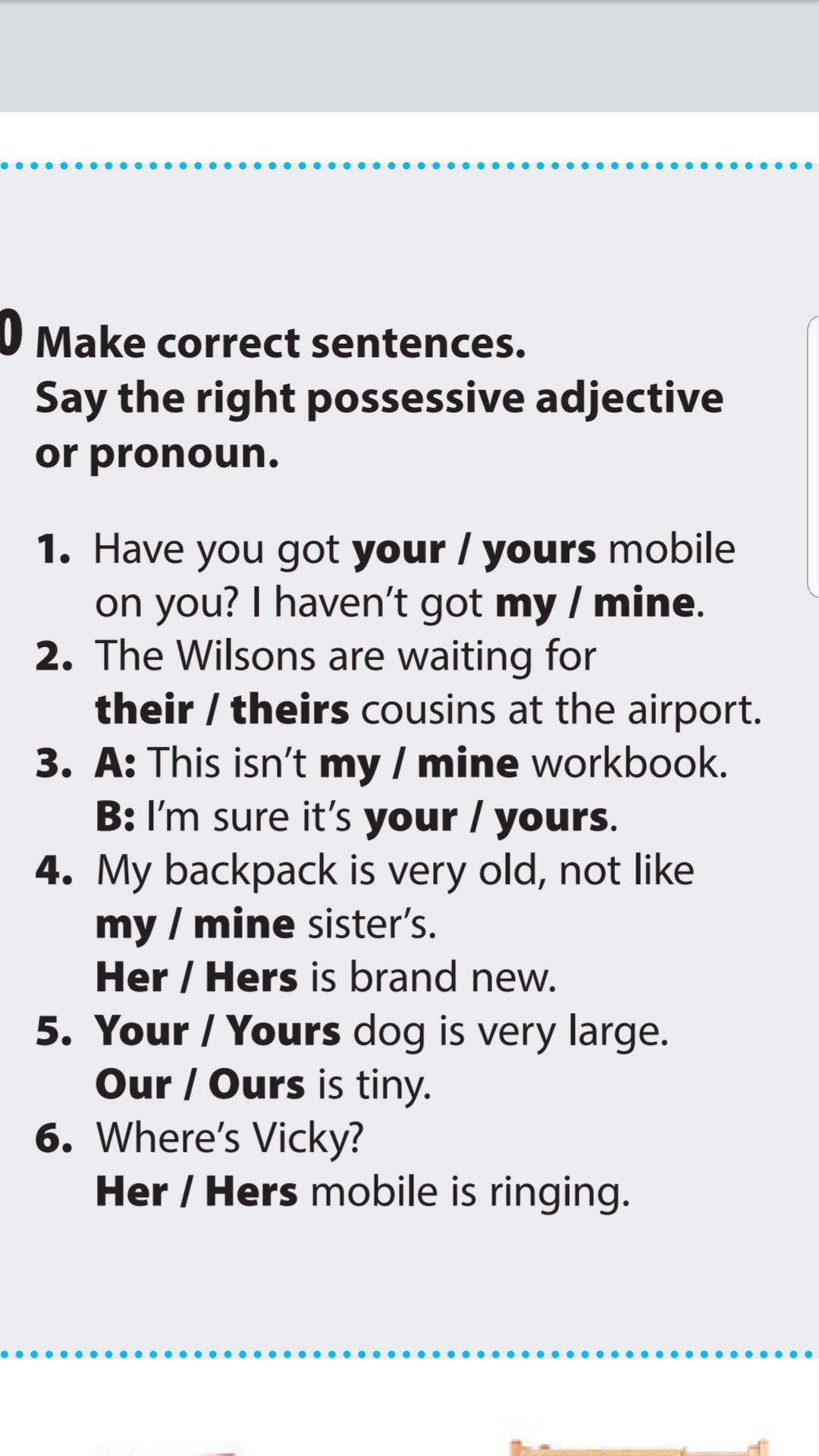 1) your, mine