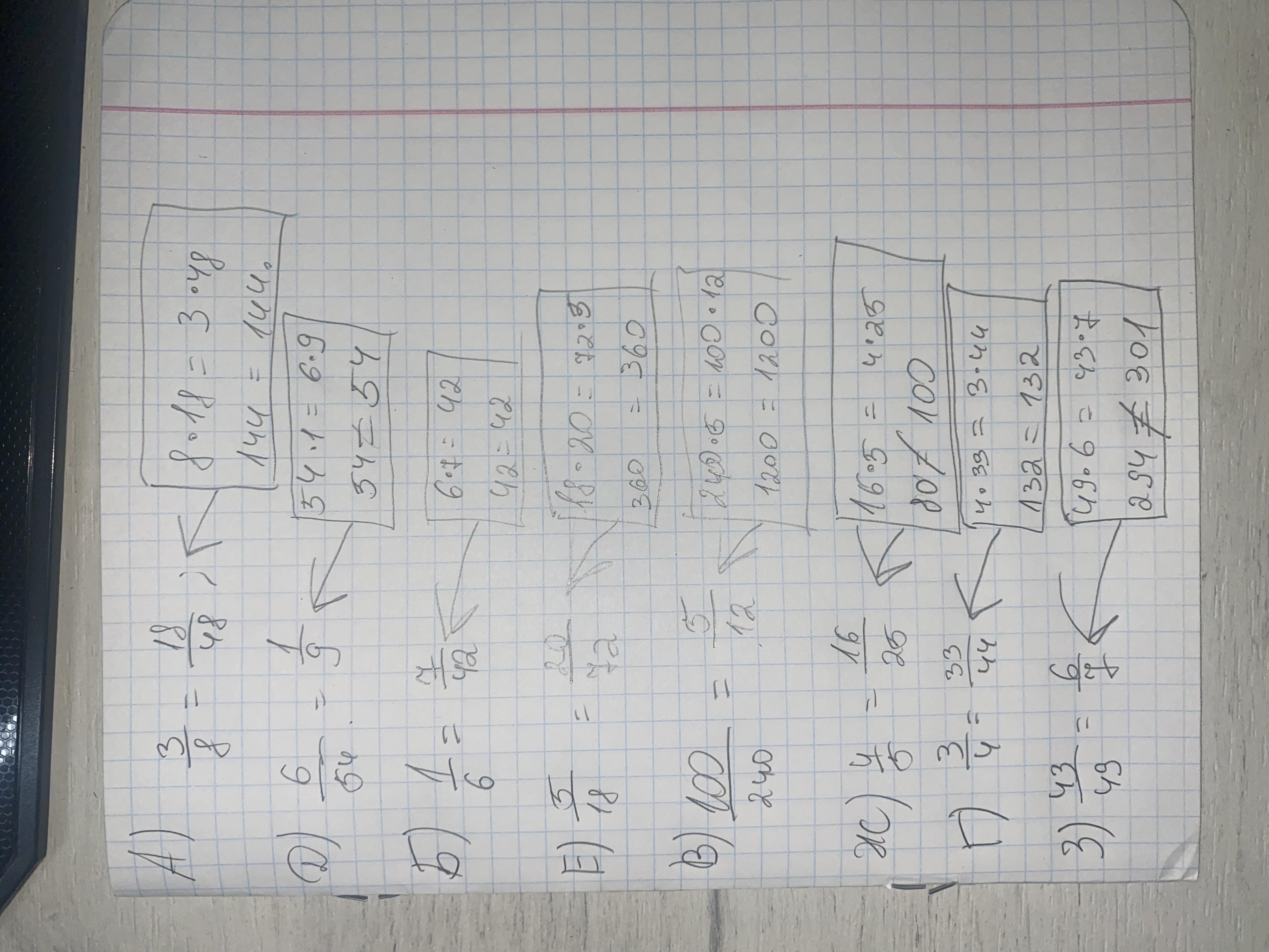 6. Выясните, истинно или ложно данное равенство: а) 3/8=18/48