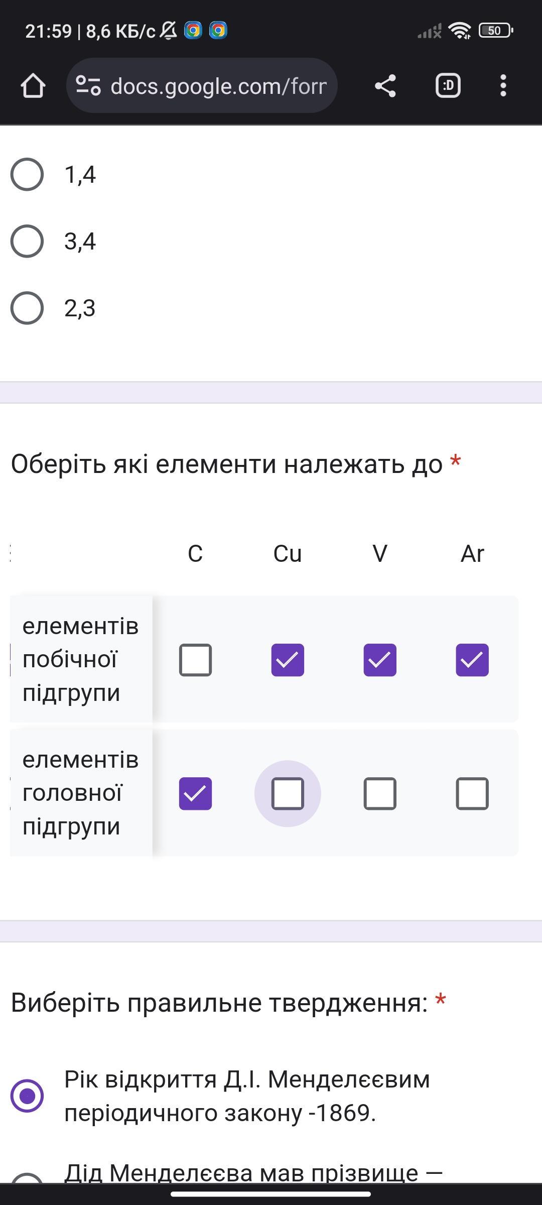 Елементи головної підгрупи - C, Ar Елементи побічної підгрупи - V, Cu