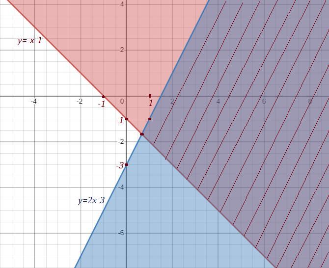 у ≥ - х - 1 - это часть плоскости , расположенная выше прямой у = -х -1