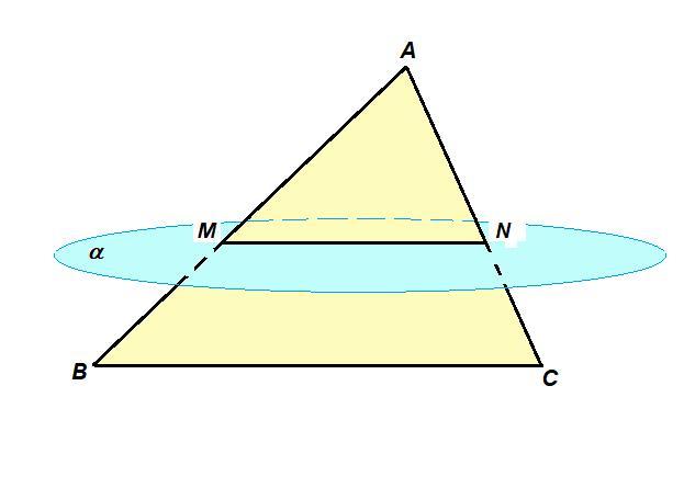 Площина перетинає сторони АВ і АС трикутника АВС відповідно в точках N та М і паралельна стороні ВС. Якщо N і М - середини сторін трикутника АВС, ВС = 18см, то NM дорівнює