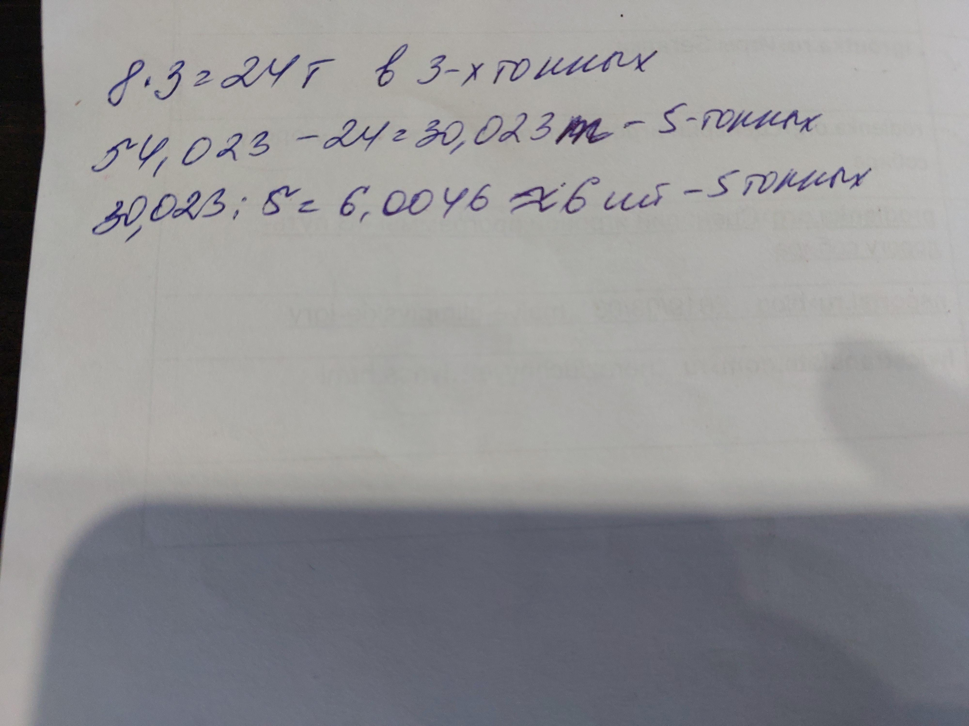 В несколько пятитонных и 8 трехтонных грузовиков погрузили 54 023 килограмм арбузов Сколько было 5 тонных грузовиков