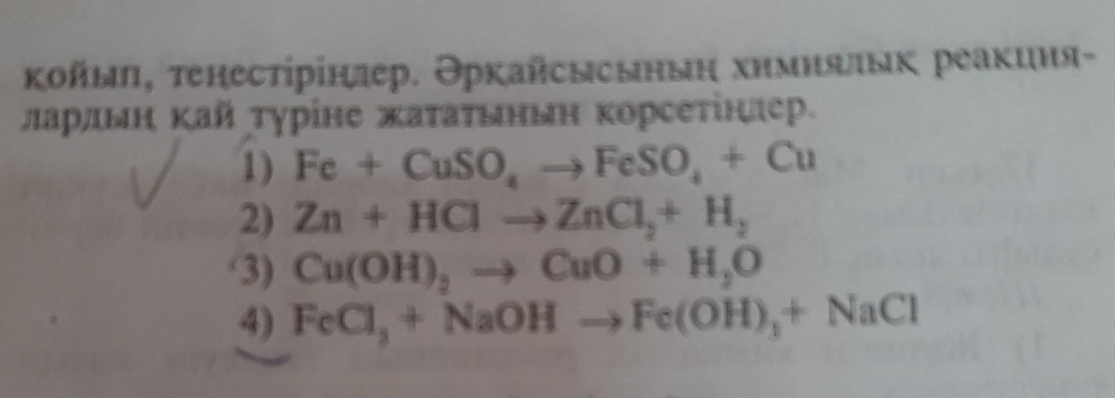 Төменде берілген заттар әрекеттескенде химиялық реакция тендеулерін аяқтап коэффициенті қойып теңістіріңдер көмектесіңдерші өтінемін
