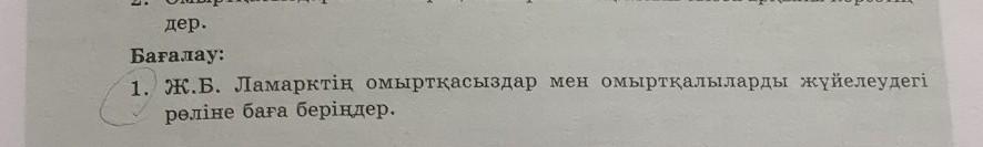 Багалау: 1. Ж.Б. Ламарктiн омырткасыздар мен омыртқалыларды жүйелеудегі роліне баға берiндер.