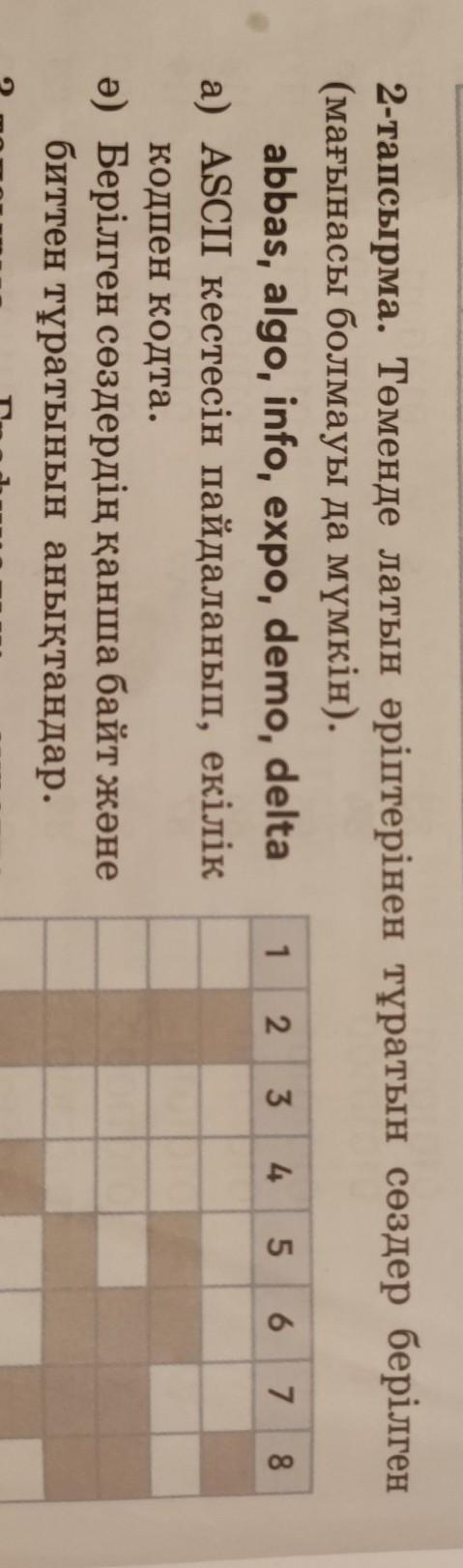 2-тапсырма. Төменде латын әріптерінен тұратын сөздер берілген (мағынасы болмауы да мүмкін).