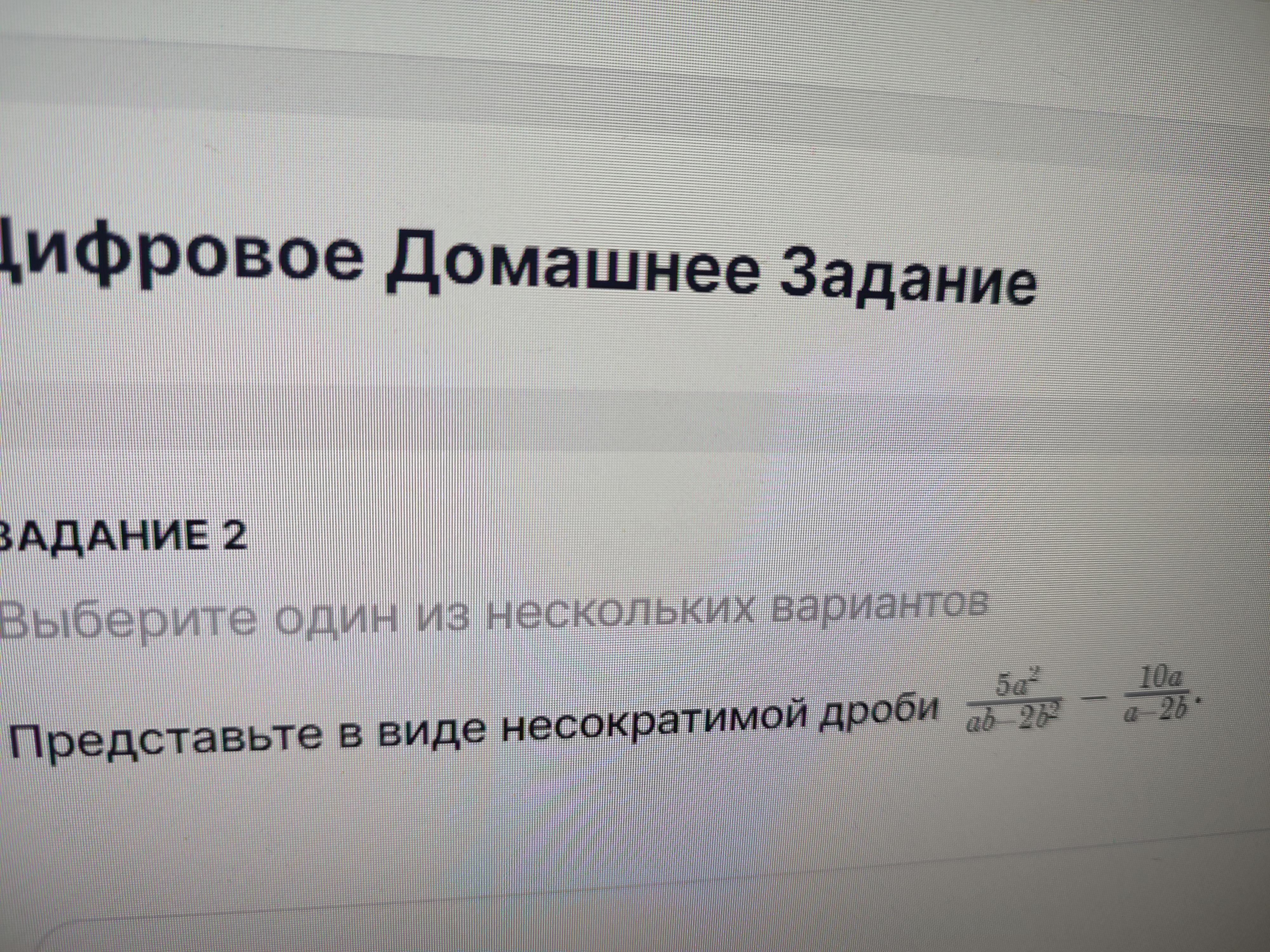 \frac{5a^{2} - 10ab }{ab - 2b {}^{2} }  = \frac{5a(a - 2b) }{b(a - 2b)}  = \frac{5a}{b}