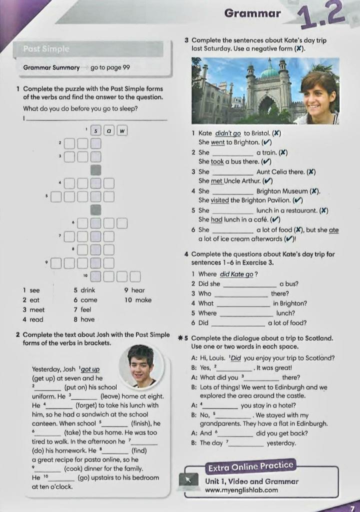 3. 2. Didn't take 3. Didn't meet 4. Didn't visit 5. Didn't have 6.Didn't eat