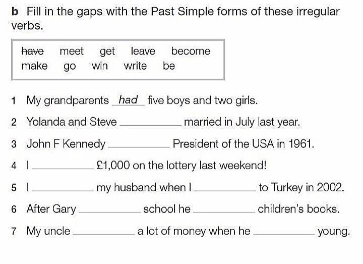 b Fill in the gaps with the Past Simple forms of these irregular verbs.