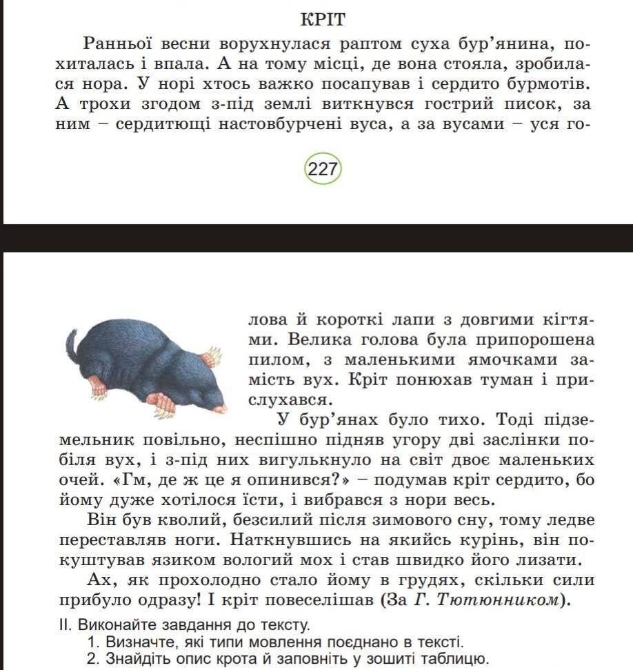 4. Поява крота і його опис: гострий писок, настовбурчені вуса, велика голова з ямочками замість вух і т.д.
