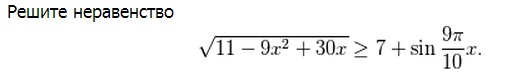 11 - 9x^2 + 30x ≥ (7 + sin(9πx/10))^2