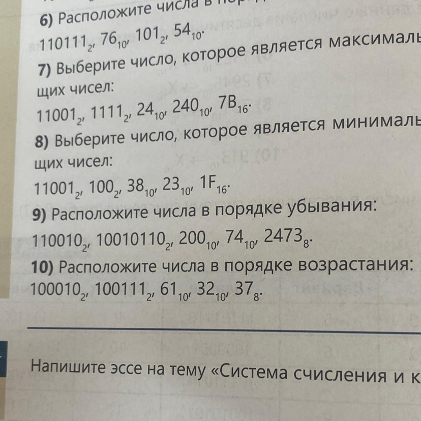 расположите числа в порядке убывания 110010 (2),100111 (2),200 (10),74 (10),2473 (8)