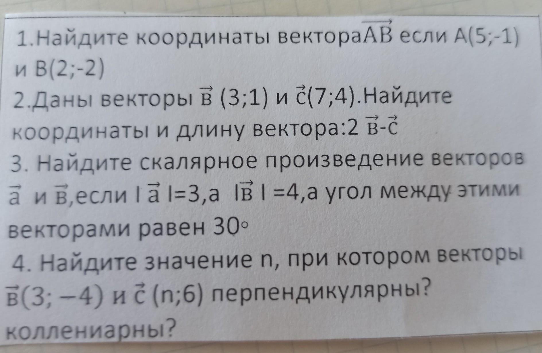 4. Два вектора перпендикулярны, если их скалярное произведение равно 0. Два вектора коллинеарны, если они параллельны и могут быть представлены как умноженные на одно и то же число.