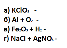 №1 | Закончить уравнения химических реакций, расставьте коэффициенты, укажите тип хим. реакции, назовите вещества: 1 картинка