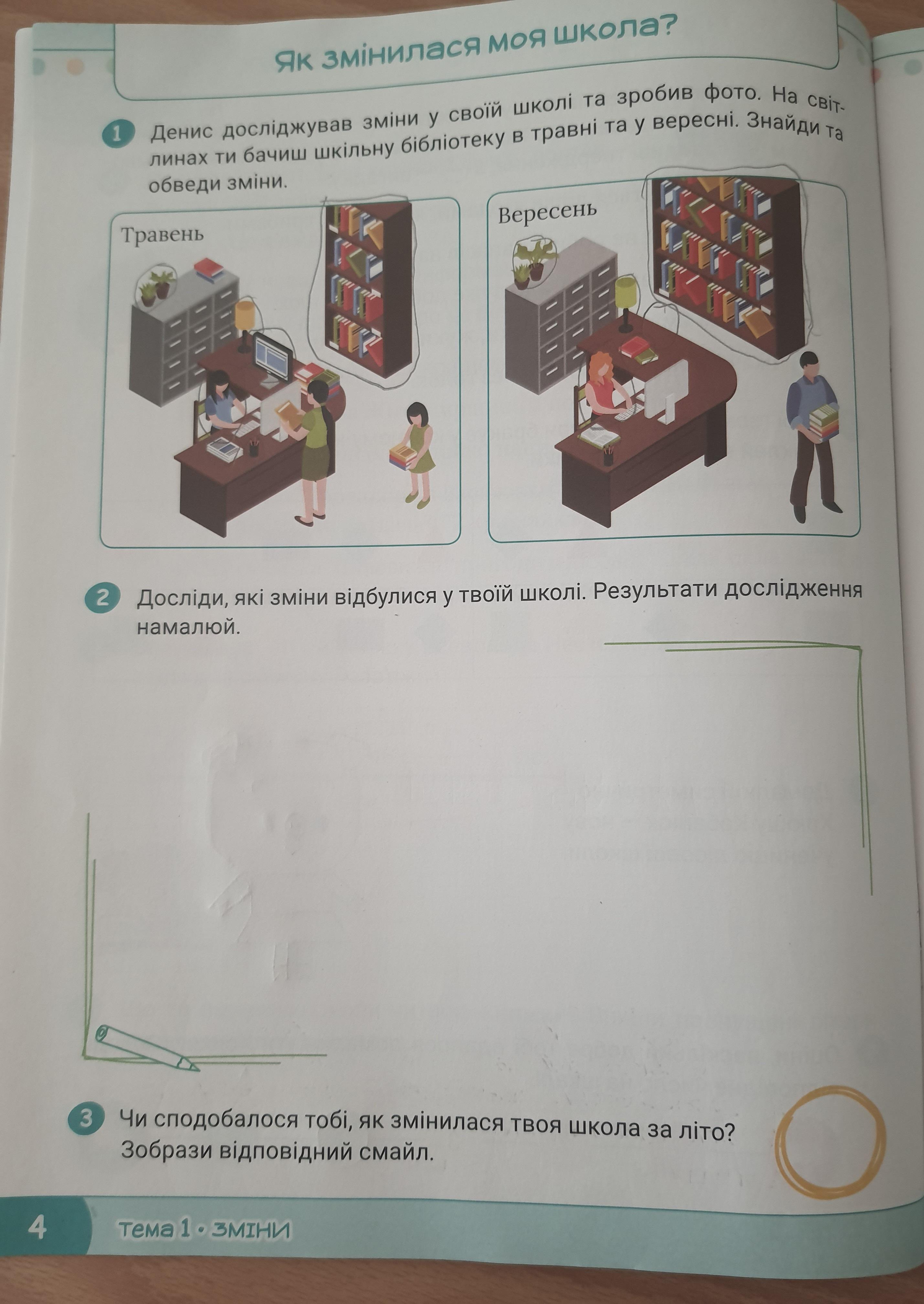 смотри,первое у тебя сделано,второе легко,нарисуй то что появилось новое в школе,например если у вас в классе сделали ремонт,нарисуй класс ваш