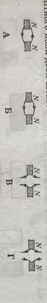 На якому рисунку правильно показані ділянки силових ліній магнітного поля двох штабових магнітів?