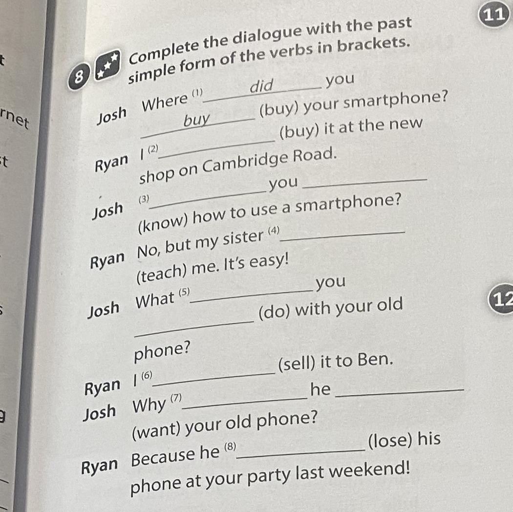 1) did buy 2)do you know 3)did teach 5)did you do 6)did sell 7)did he want 8)did lose