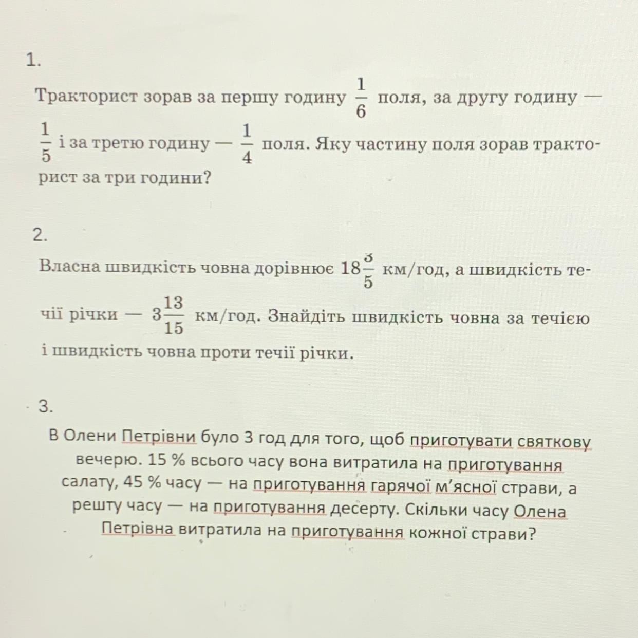 1/6 + 1/5 + 1/4 = 10/60 + 12/60 + 15/60 = 37/60 (часть) - поля вспахал тракторист за три часа