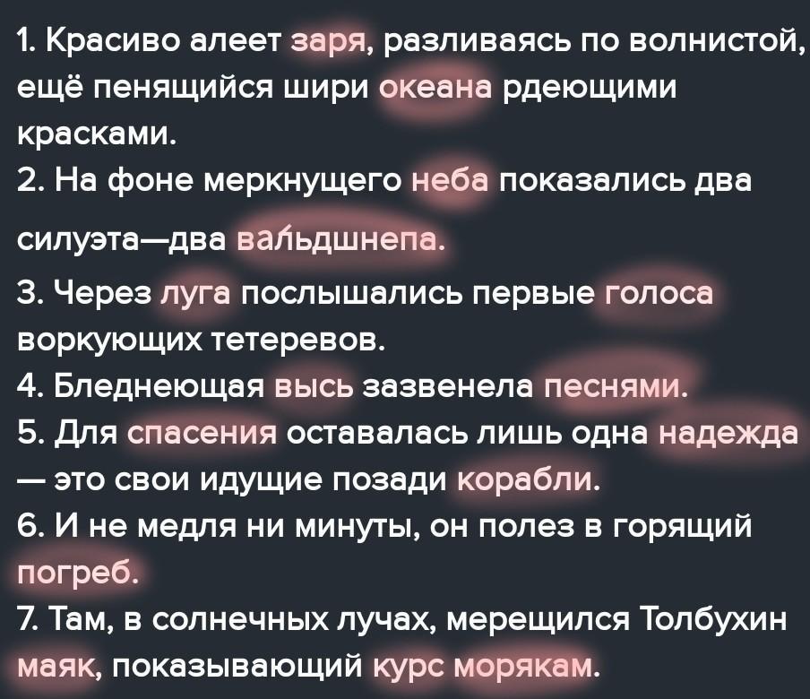 1. Красиво але..т з..ря, разливаясь по волнист..й, ещё (пениться) шири океана (рдеть) красками.