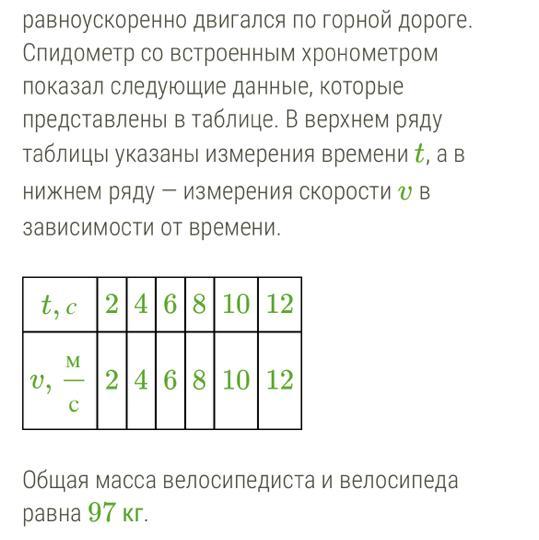 Чему равно ускорение движения велосипедиста? a = M/c2