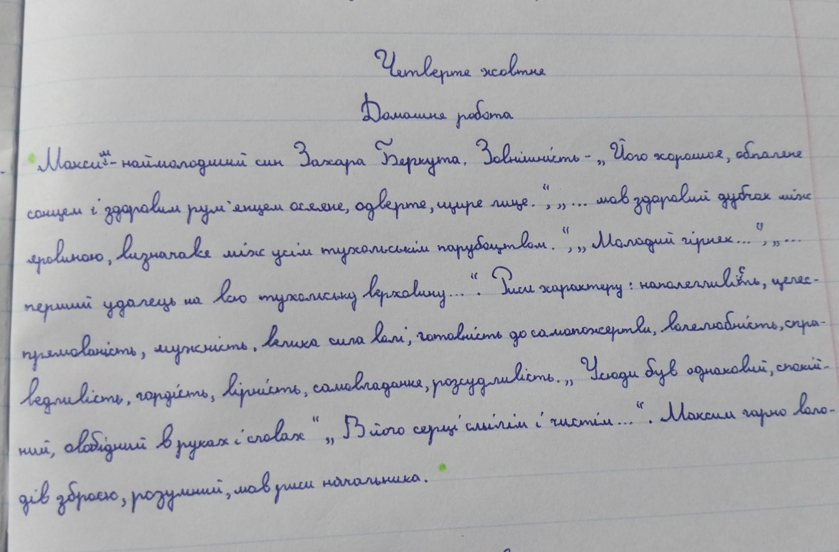 Написати характеристику одного iз героїв повісті "Захар Беркут": Захар Беркут, Максим Беркут, Тугар Вовк, Мирослава за планом: 1. Що відомо про героя, 2. Його вчинки, 3. Риси характеру, 4. Як склалась доля героя.