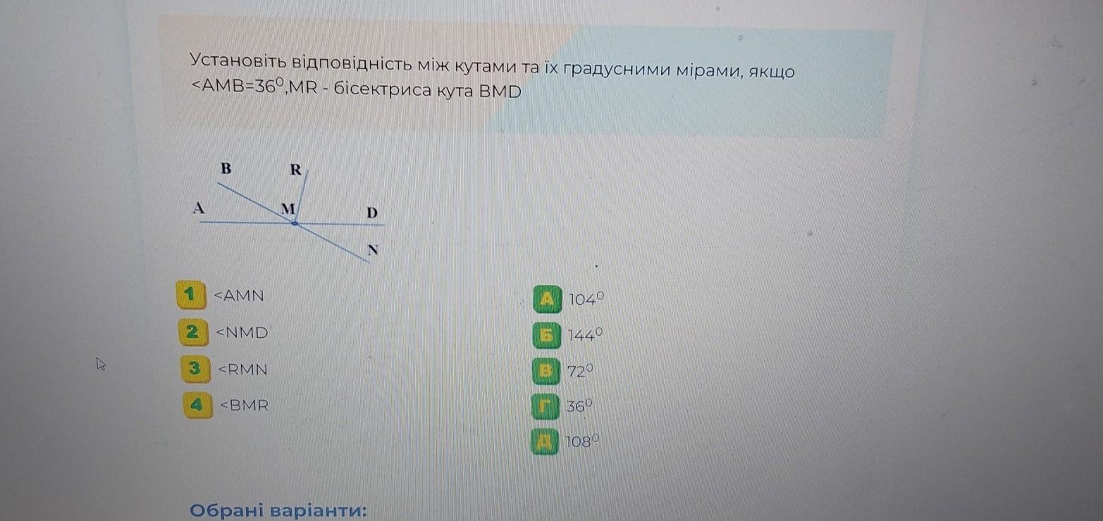 8/8 Установіть відповідність між кутами та їх градусними мірами, якщо