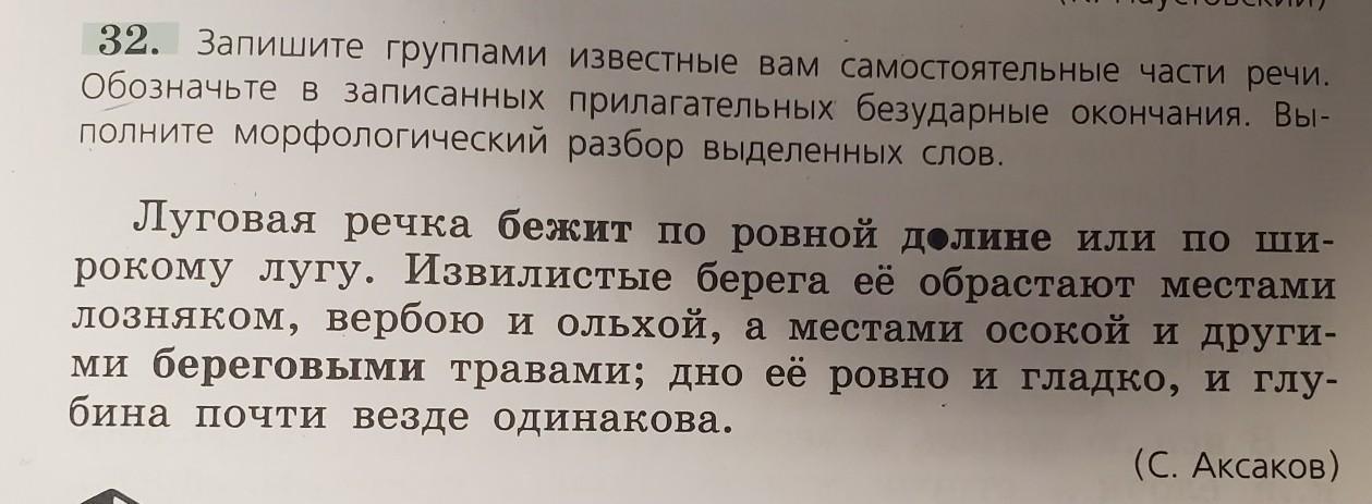Запишите группами известные вам самостоятельные части речи. Обозначьте в записанных прилагательных безударные окончания. Выполните морфологический разбор выделенных слов.