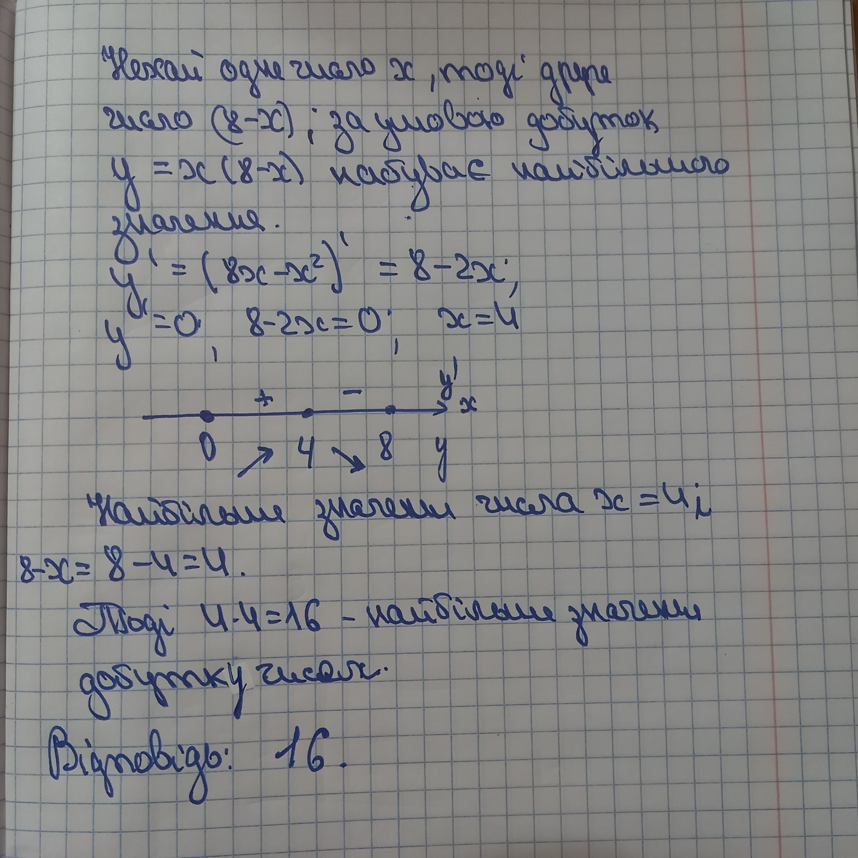 Тема функції. Сума двох чисел дорівнює 8. Знайдіть:
