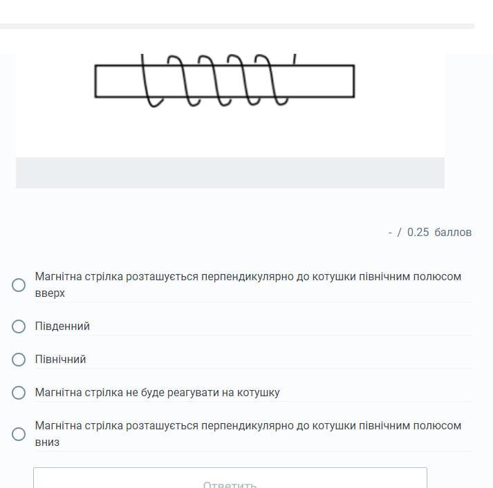Ответ:магнитна стрелка розташуэтьс перпендикулярно до котушки пивничним полюсом вниз