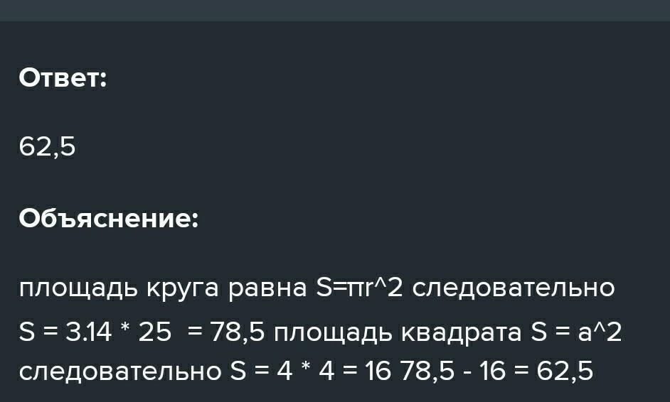 1. Найдите площадь закрашенной части фигуры, если радиус круга 4 см, а сторона квадрата 10 см. (п= 3,14).