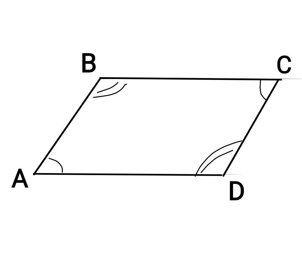 Угол В = угол D (тупые углы > 90°)