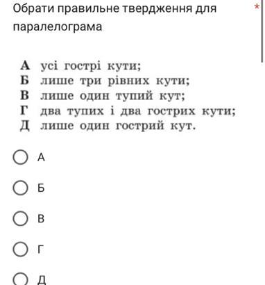 Г два тупих і два гострих кути.