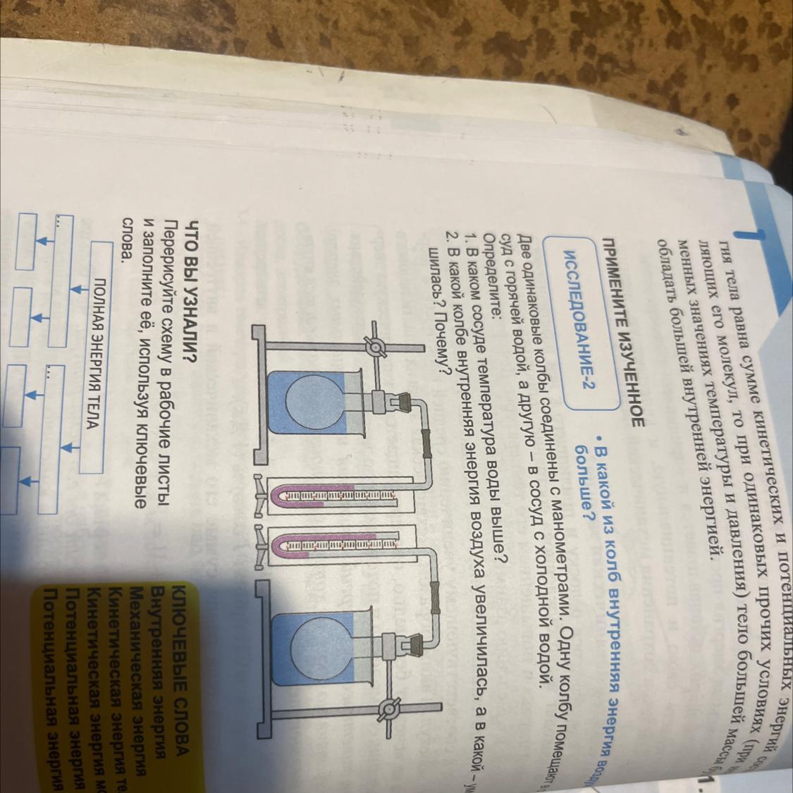 2. В какой колбе внутренняя энергия воздуха увеличилась, а в какой- умень-